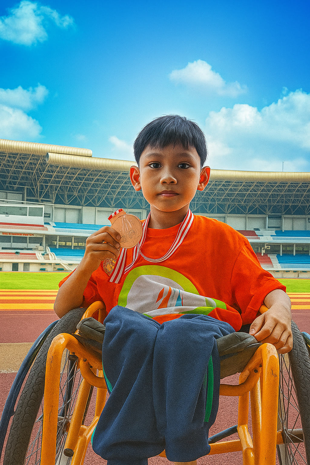 Yogyakarta – Prestasi membanggakan diraih oleh salah satu siswa dari SLB Negeri 1 Bantul, Fulvian Ega, yang berhasil meraih juara 3 dalam cabang lomba balap kursi roda pada ajang Olimpiade Olahraga Siswa Nasional (O2SN) tingkat Daerah Istimewa Yogyakarta yang diselenggarakan pada Selasa, 24 Juni 2025.